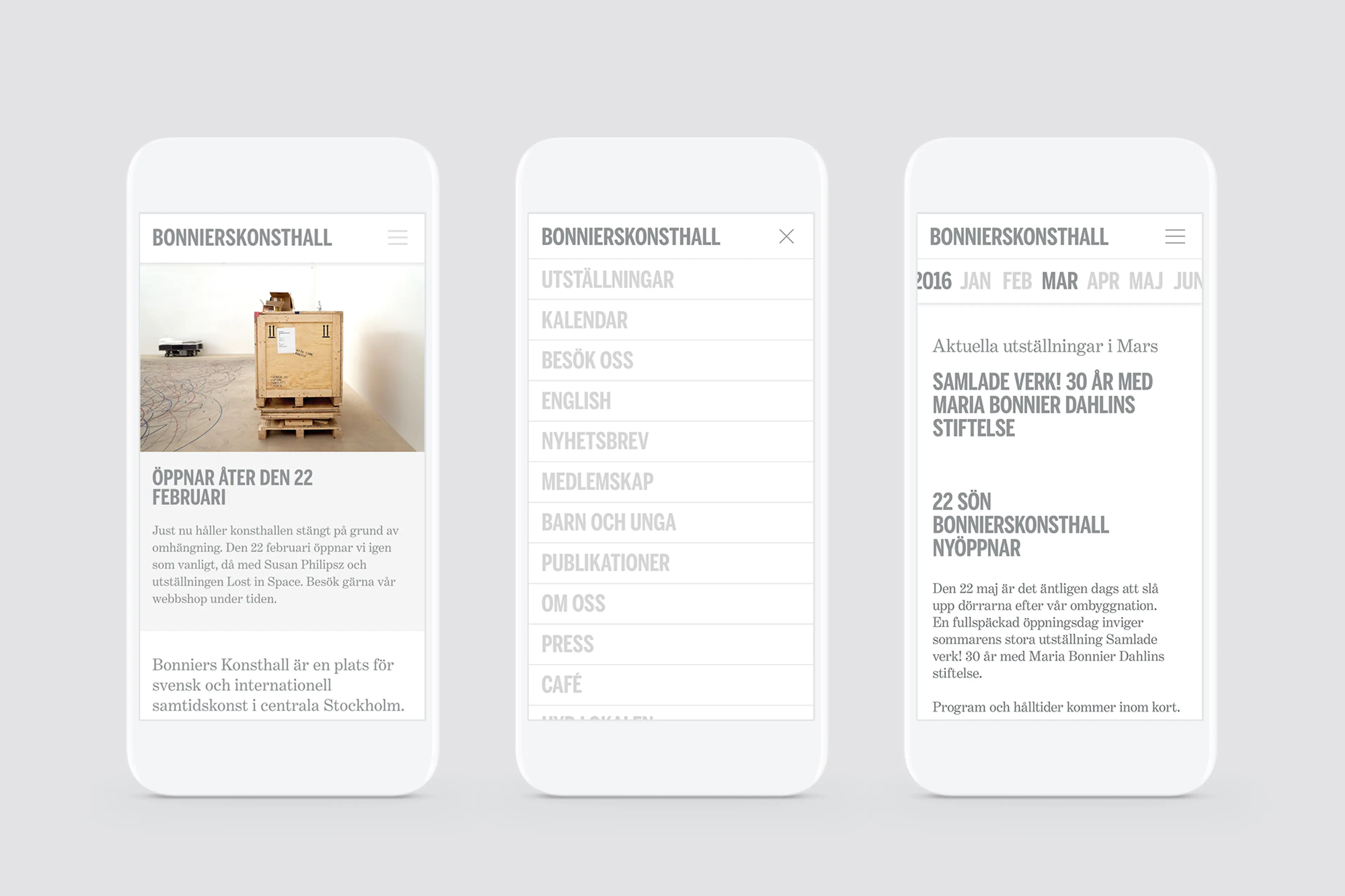 Bonniers Konsthall contacted us in 2015 with a wish to rebrand the entire venue. The new identity was to coincide with their 10-year anniversary and a total rebuild of the gallery, with a relaunch in early 2016. With a vision to be a bold and daring platform for artists, as well as a scene for open-minded discussions. The challenge, as for any art gallery or museum, was to create a strong and ownable brand identity without interfering with the art and artists.